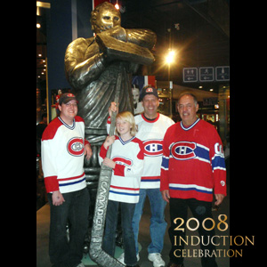 Montreal Canadiens fans get up close and personal with the nine-foot tall statue of Ken Dryden which stands guard at the entrance of the limited-time Montreal Canadiens Centennial Exhibit in the NHL Zone.