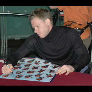 Since 1999 Saku Koivu has captained the Montreal Canadiens Hockey Club. Pictured here he signs an autograph for one of the many fans visiting the Hockey Hall of Fame. (Nov-10-2006-Craig Campbell/HHOF)